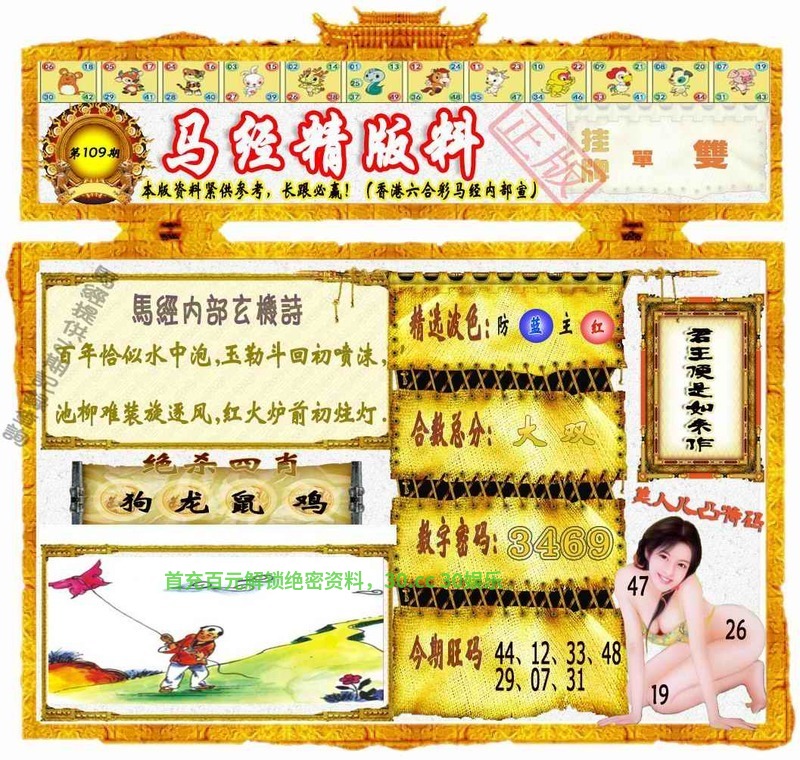 109期:必中七肖→羊狗虎猴鼠猪兔 |